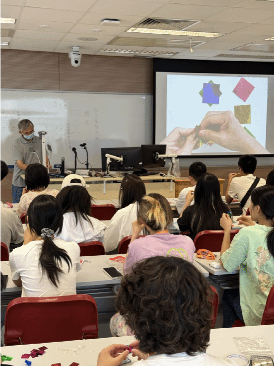 迷你花牌工作坊上,黄乃忠导师拆解传统花牌的精巧技艺,彩纸折叠间,感受非遗文化的鲜活;